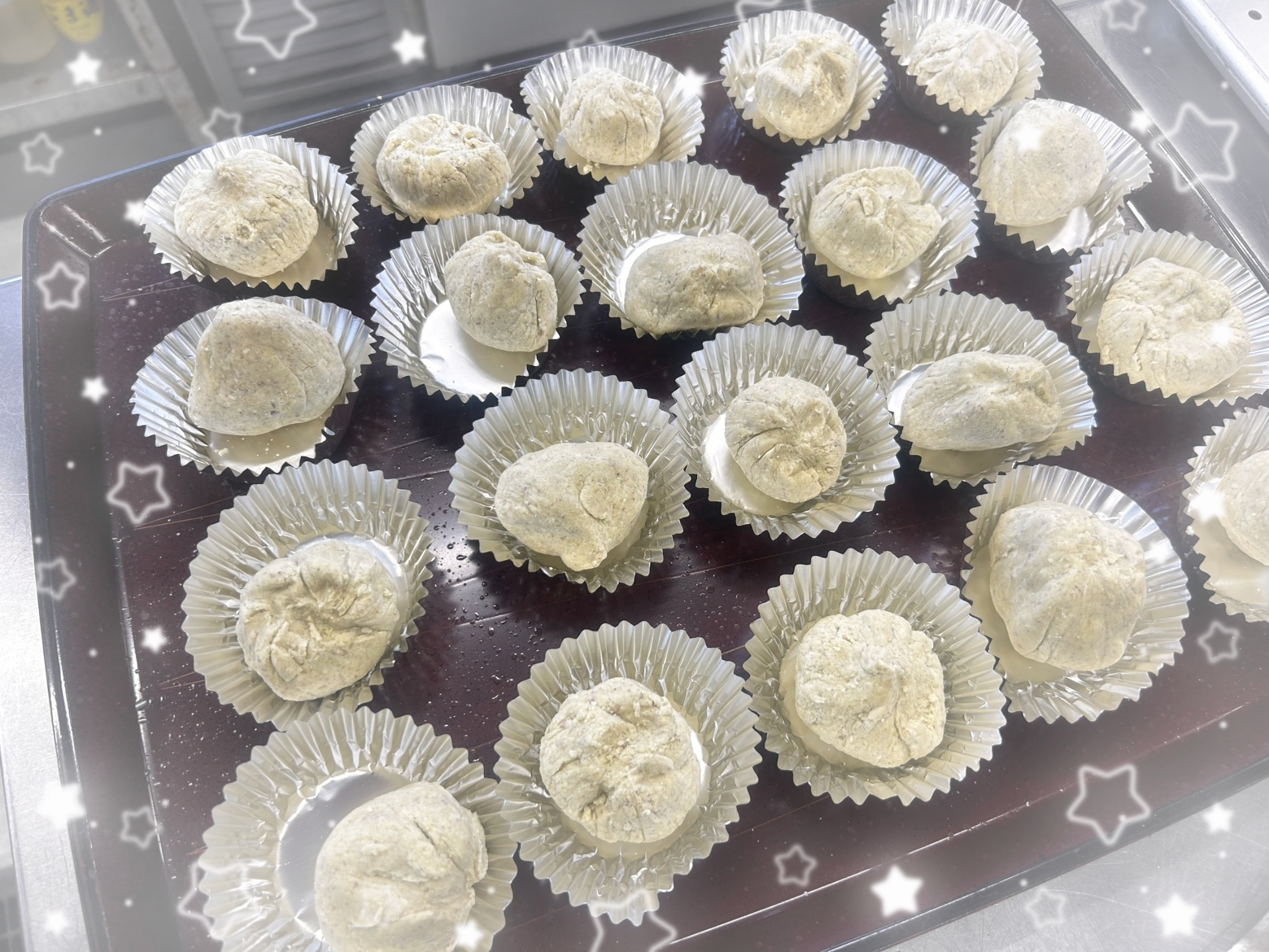 少し大きめの形もご愛嬌。ご入居者様にはおやつの時間に提供し、「美味しいね」と笑顔で召し上がっていただけました。