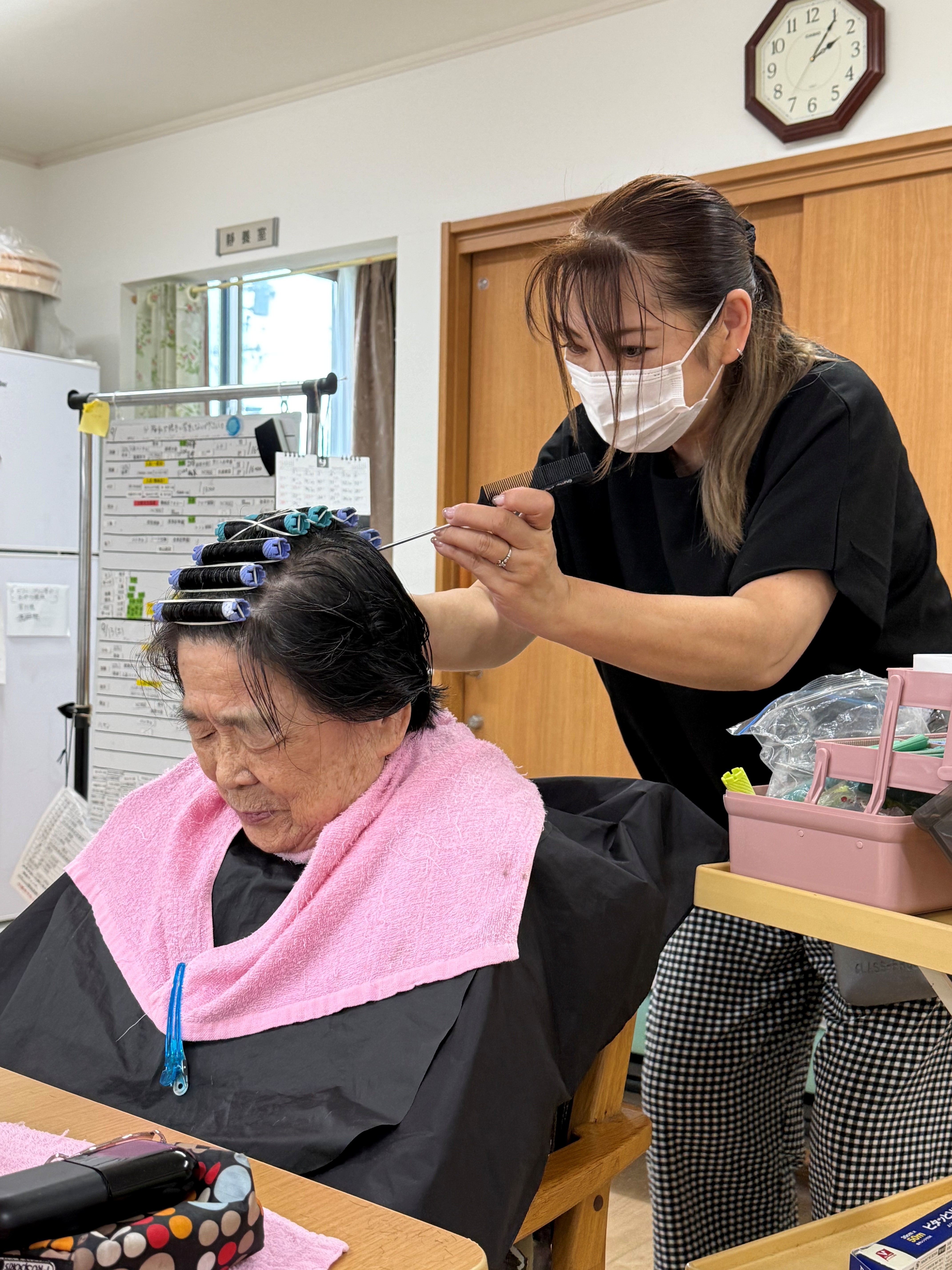 美容師さんと顔なじみのご利用者様は、会話も弾んで笑い声も聞こえてきました♪